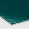 Aufbau: Der Zugträger besteht aus 2 Polyester Gewebelage in Kette und Schuss. Verschleißfeste Urethan-Imprägnierung auf der Laufseite in Leinwandbindung. Als Tragseite ein 0,2mm dicke, grüne Polyurethan - Beschichtung in 85 Shore A. Die Gesamtdicke ist 1,9mm mit +/- 0,15mm und einem Gewicht von 2,0 kg/m2. Der Spannungsdehnungswert relaxiert liegt bei 5,0 N/mm bei 1% Dehnung. Es wird eine Auflegedehnung von 0,3% empfohlen. Das Band ist von -30 bis +100 Grad – kurzzeitig bis 120 Grad einsetzbar.